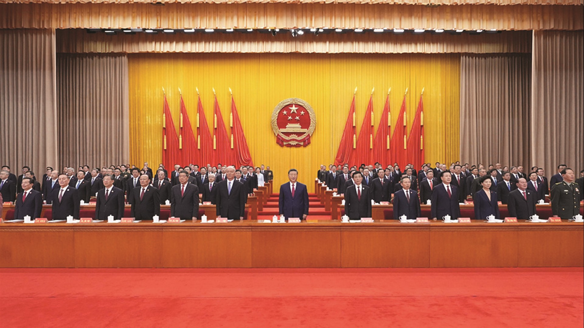 上午10时30分许,在欢快的乐曲声中,习近平等领导同志走上主席台,全场响起长时间的热烈掌声。